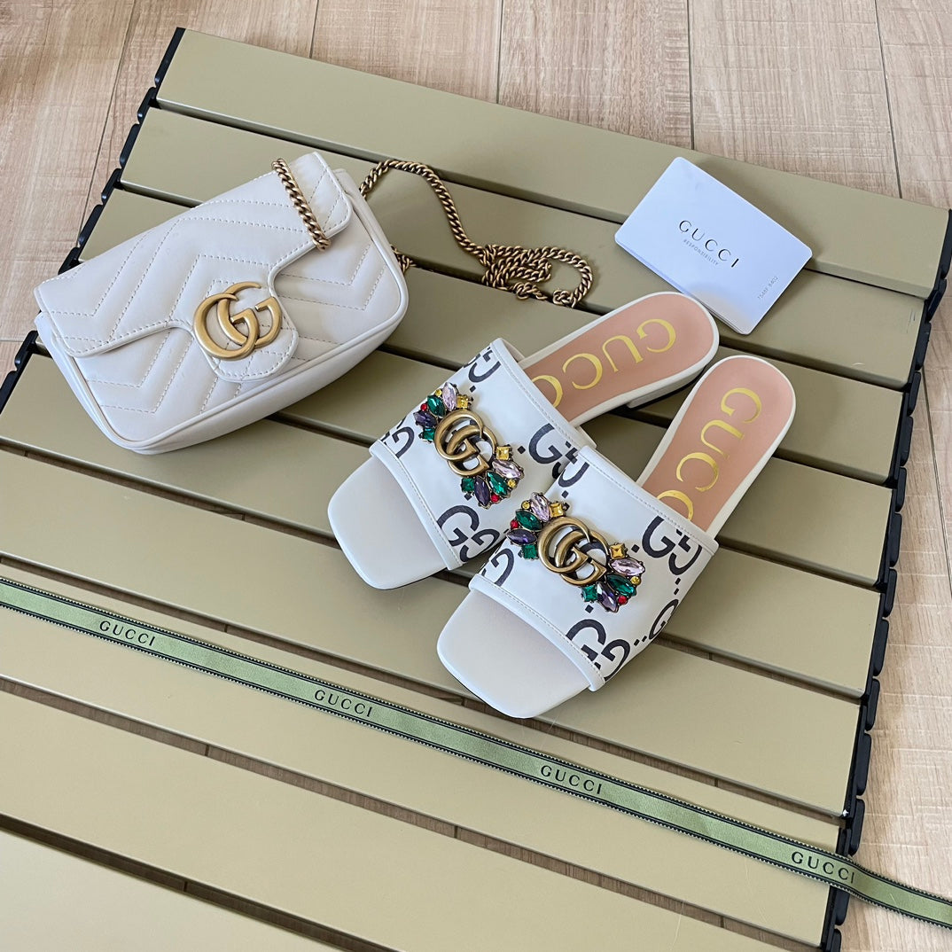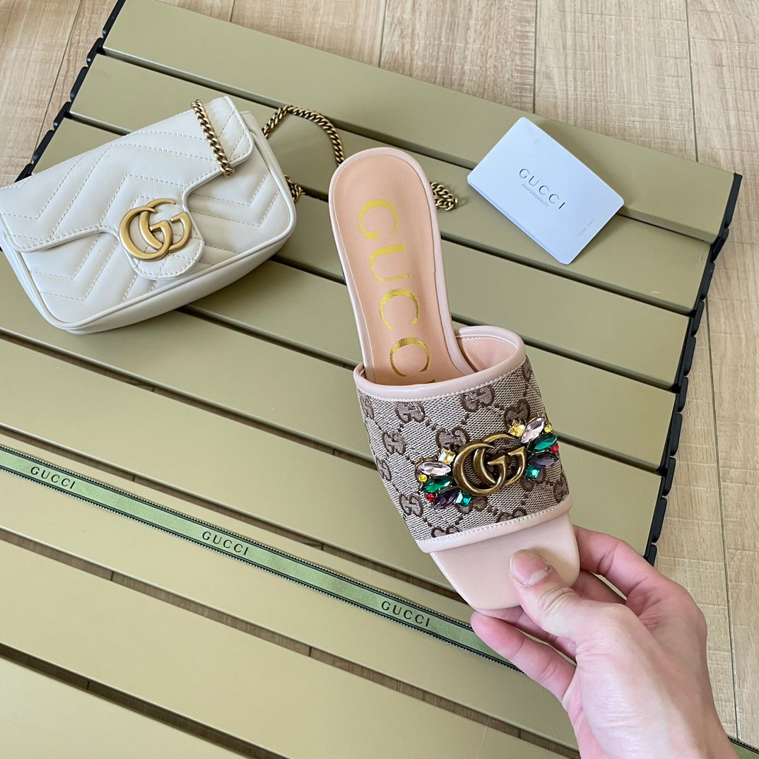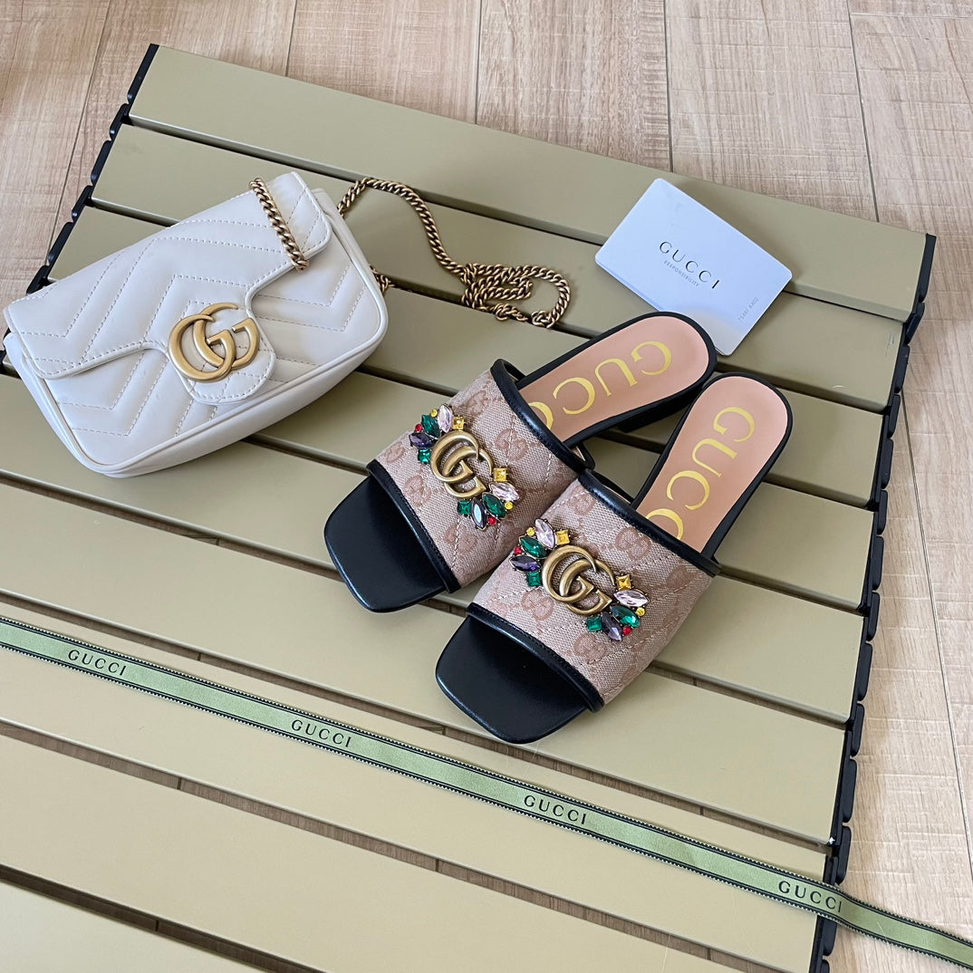 - This sandal is made of twill quilted classic G canvas material. ingeniously embellished with double G shape accessories from the 1970s collection. paying tribute to the brand's long design heritage with a timeless design.